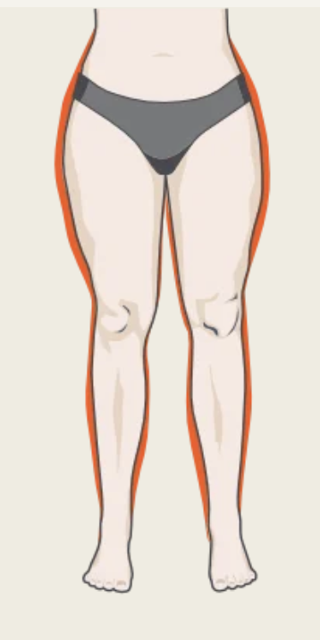 Sowohl Unter- als auch Oberschenkel sind betroffen.